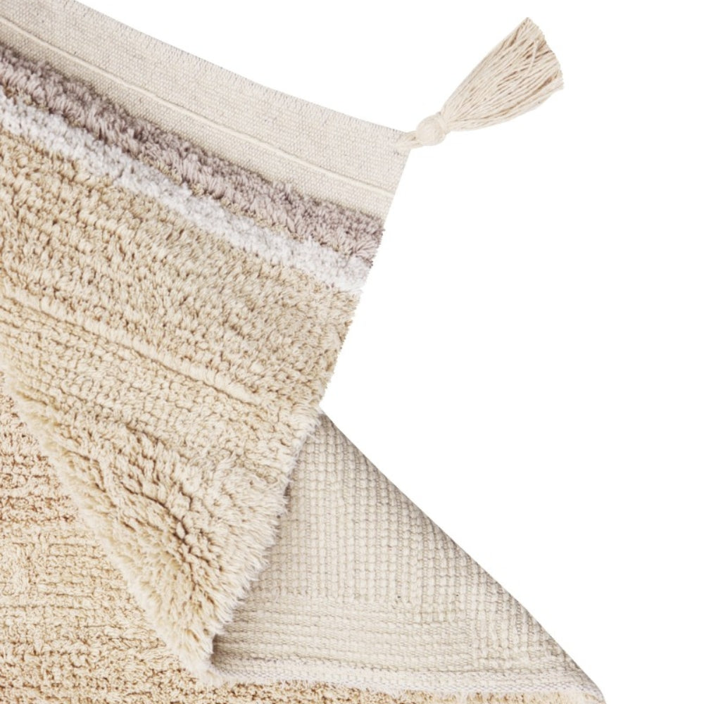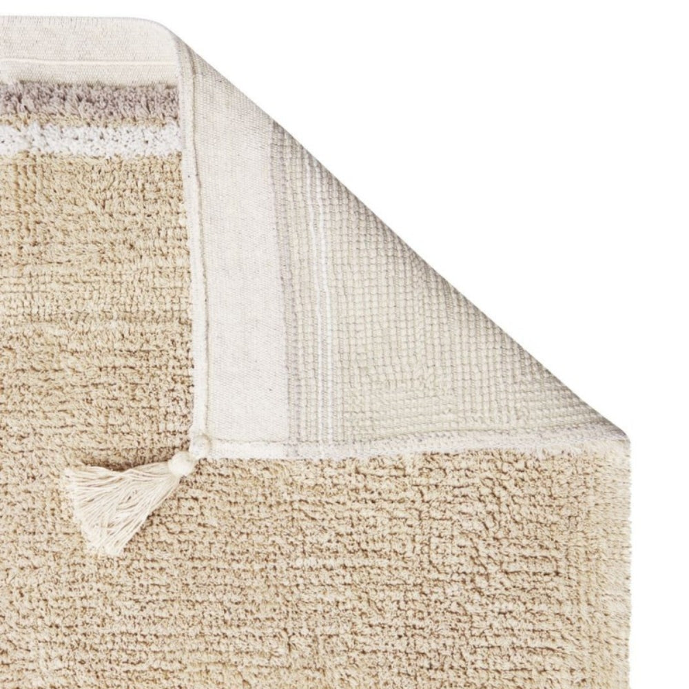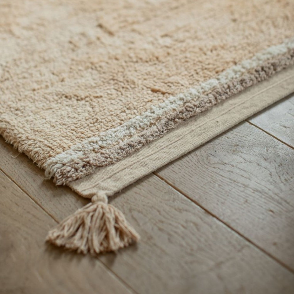 Fabricada con un tejido suave de pelo corto y decorada con sutiles borlas, la alfombra de Lorena Canals aporta calidez y un toque especial a la habitación de tu hijo.