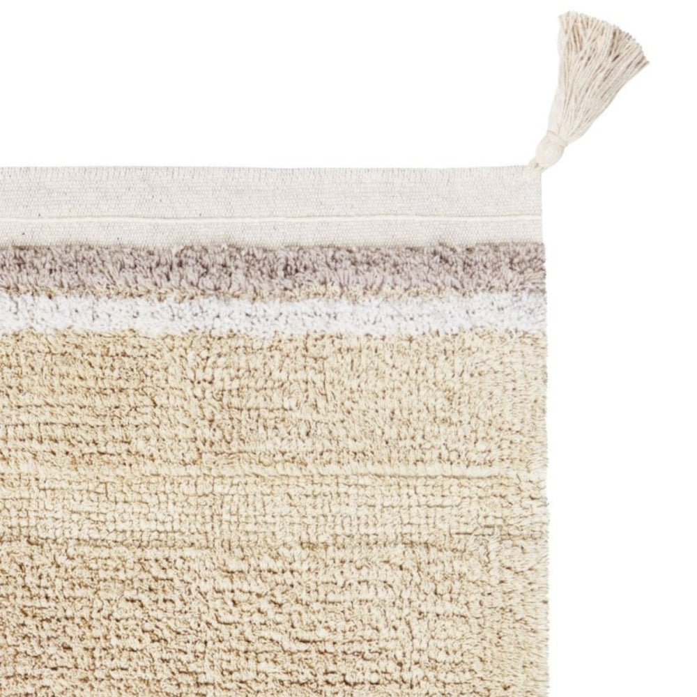 Fabricada con un tejido suave de pelo corto y decorada con sutiles borlas, la alfombra de Lorena Canals aporta calidez y un toque especial a la habitación de tu hijo.