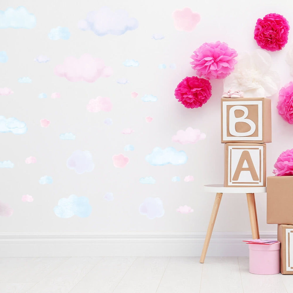 Adhesivos decorativos para niños nubes rosas de PASTELOVELOVE.