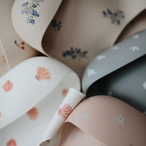 El babero de silicona Mushie Lilac Flowers es un estupendo babero de silicona con un diseño clásico y un aspecto atemporal.