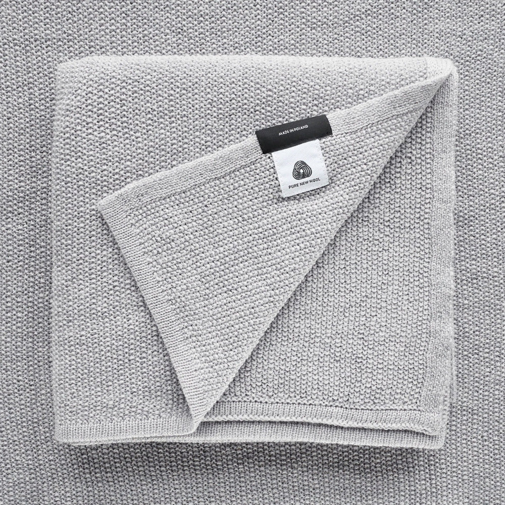Una manta muy cálida y densa hecha de lana merino con un tejido que recuerda a las galletas.