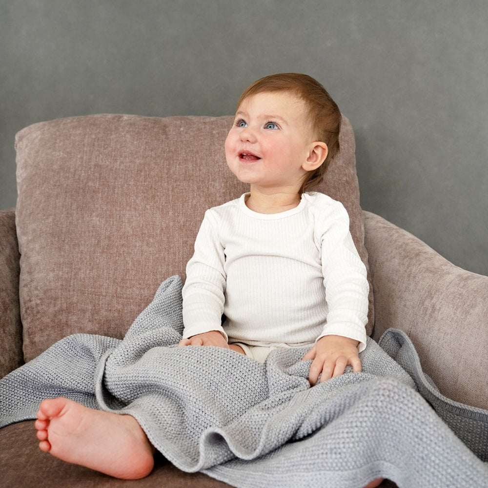 La suave manta de lana merino también se puede utilizar como mantita para bebés de LullaLove.