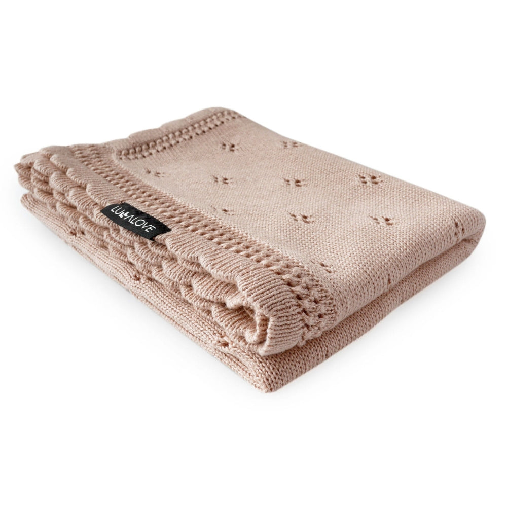 LullaLove Manta para bebé calada 80 x 100 cm, color beige caramelo margarita