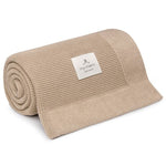 La preciosa y elegante manta de bambú tejida Memi en color beige cuenta con la certificación de máxima calidad, es transpirable y no irrita la delicada piel de tu bebé.