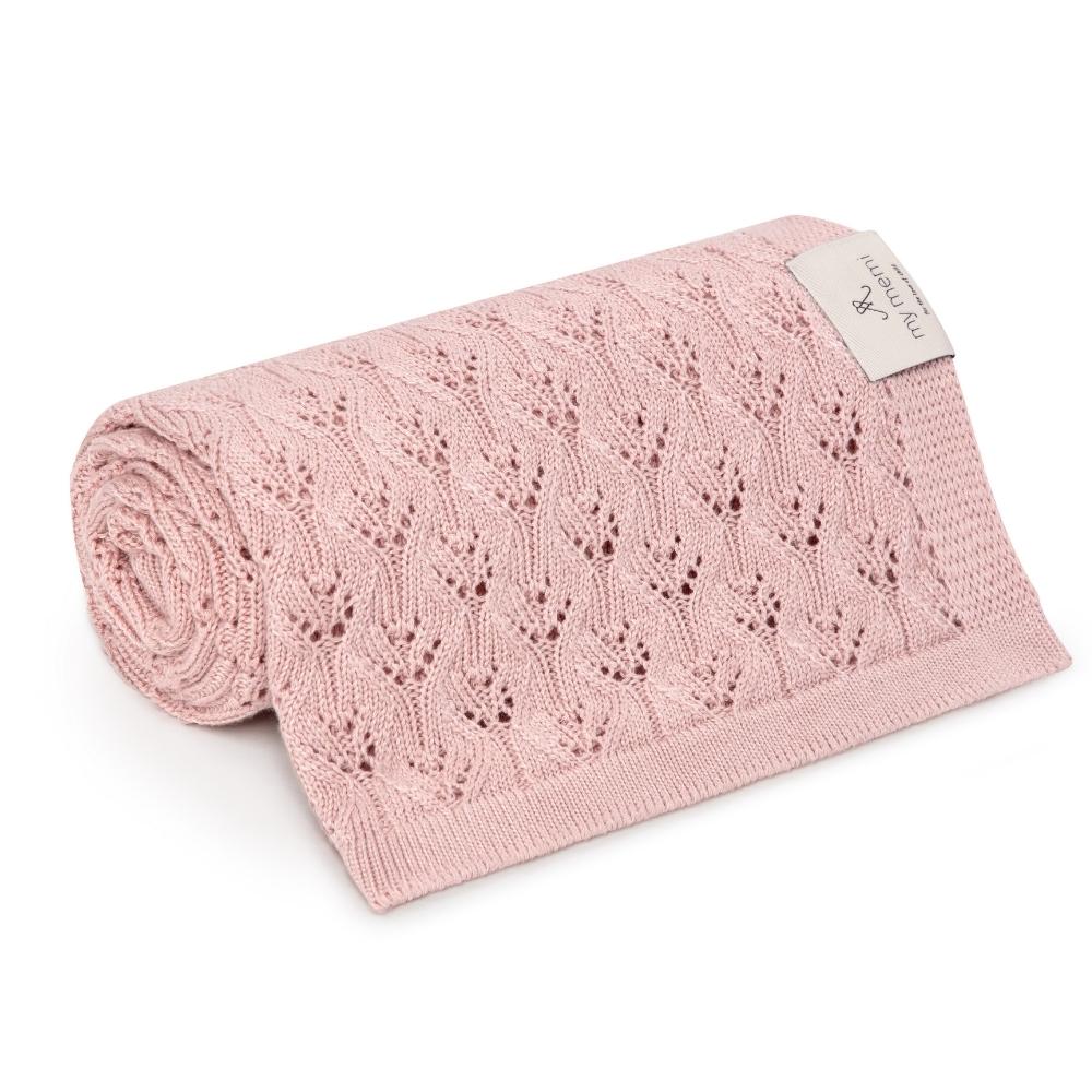 La manta de bambú calada Memi 80x100 rosa empolvado es una manta suave para la delicada piel de tu bebé.