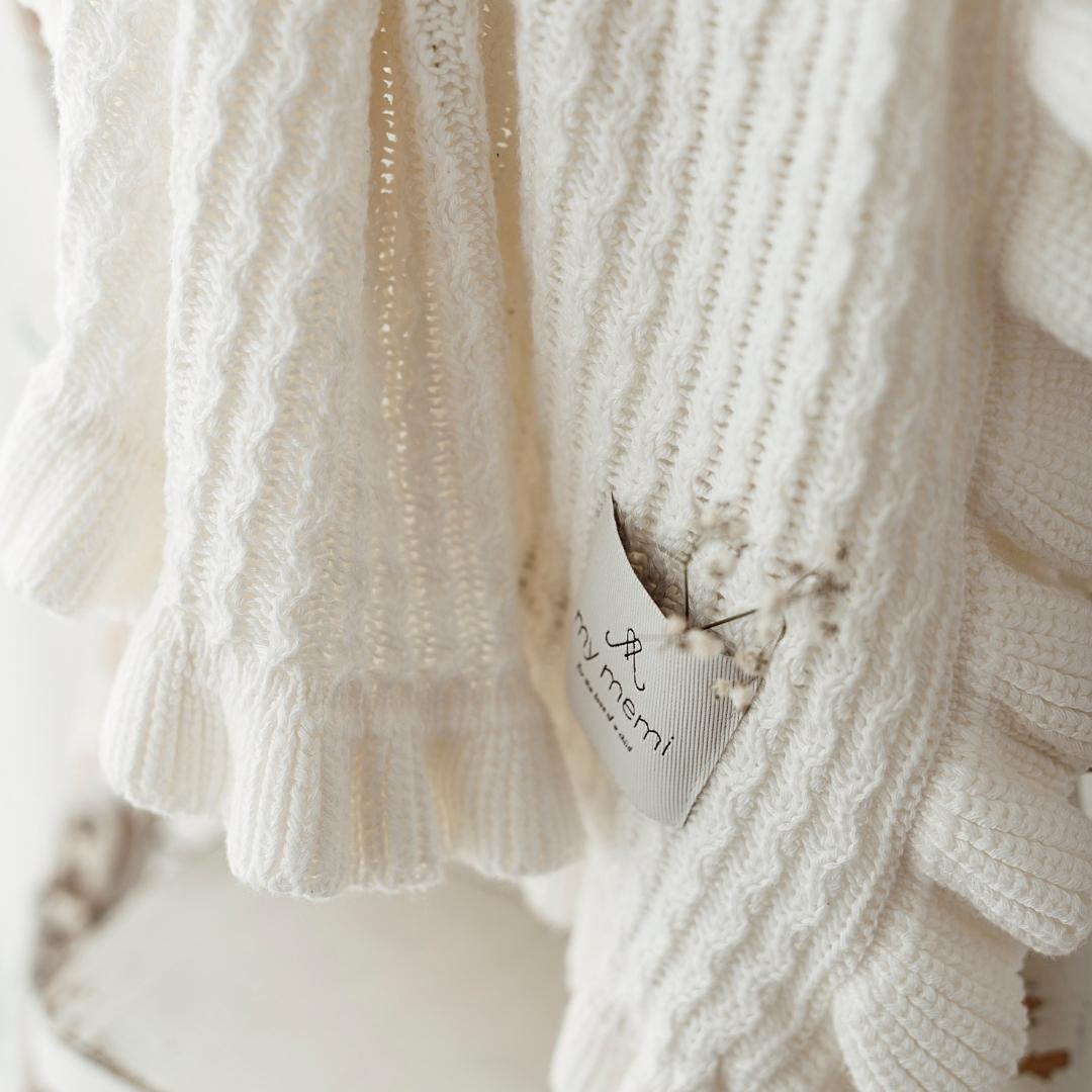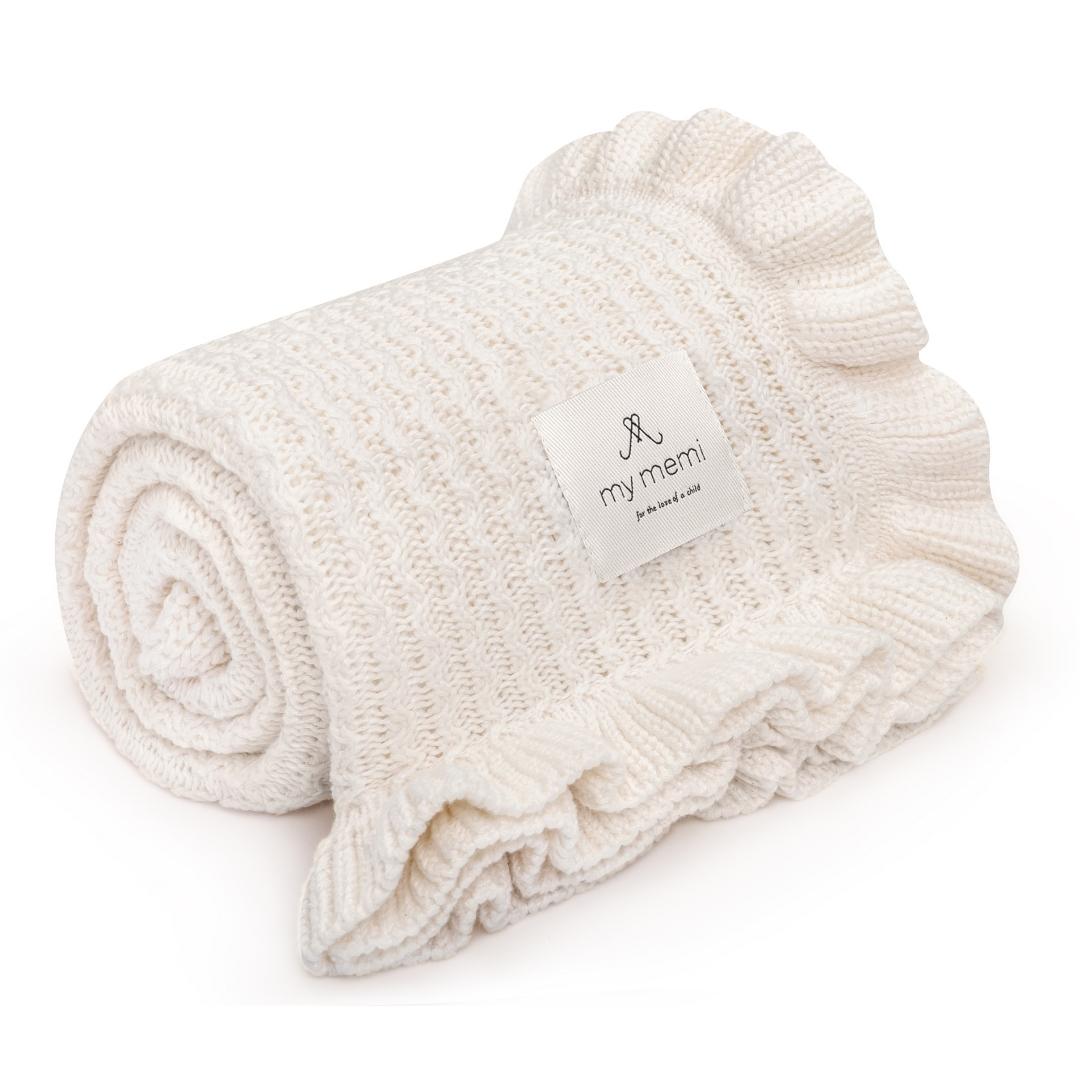 Una preciosa y elegante mantita de bambú para bebé con volantes color crema (crema) Memi.