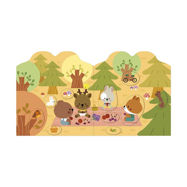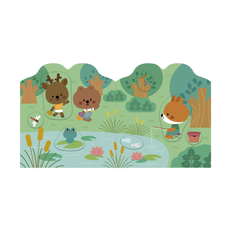 Esto permite al niño seguir la vida de los animales del bosque, contar sus propias historias y desarrollar su imaginación.
