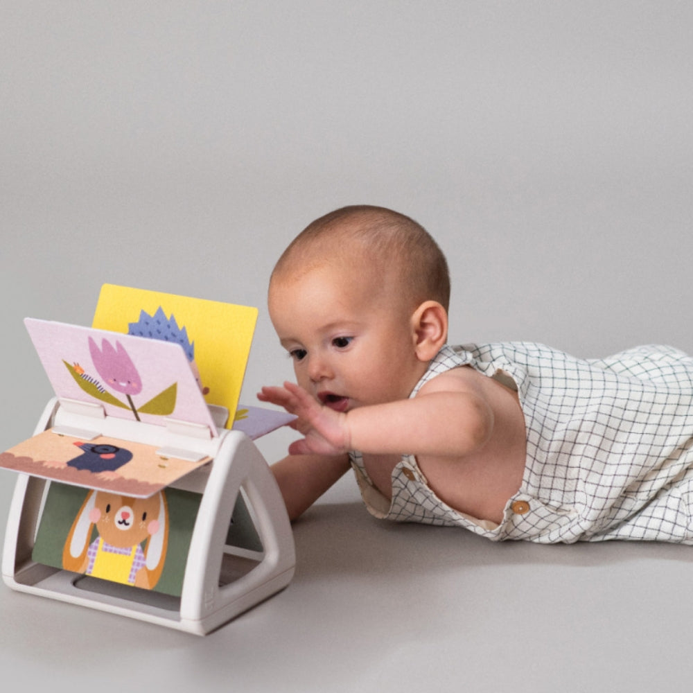 De esta manera, el libro giratorio Tummy-Time ayuda a desarrollar las habilidades cognitivas, la coordinación motora y la percepción visual, al tiempo que proporciona al bebé mucha diversión y disfrute.