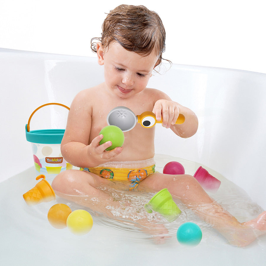El juguete para el baño Yookidoo, con forma de colorida cubeta de helado, convierte la hora del baño diaria en un juego divertido y lleno de descubrimientos.