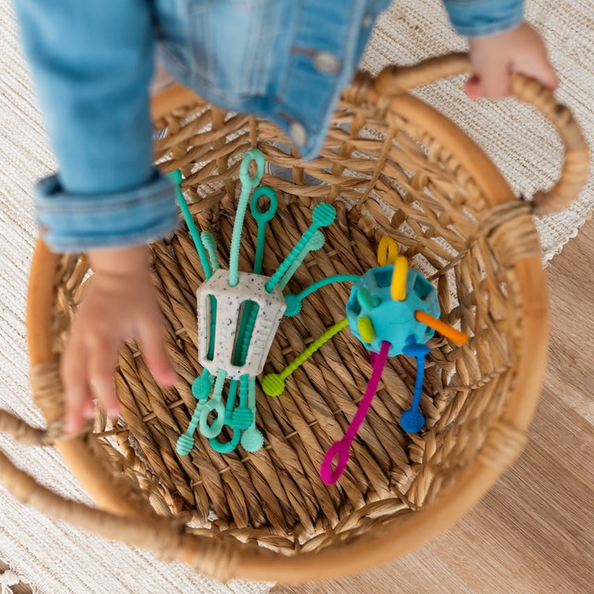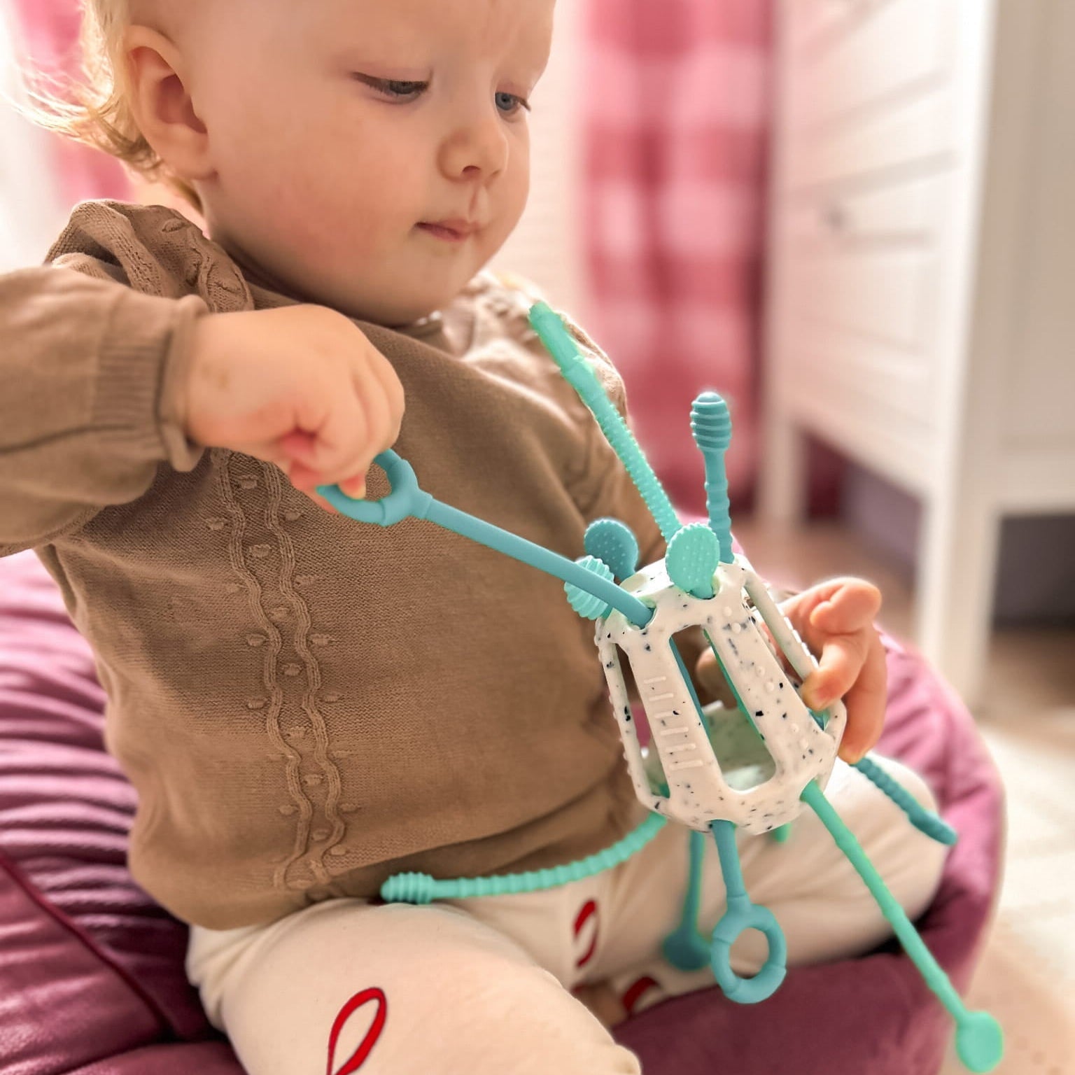 El juguete sensorial Drag de Mobi es un juguete sensorial único, especialmente diseñado para niños pequeños a los que les encanta explorar diferentes texturas y formas.