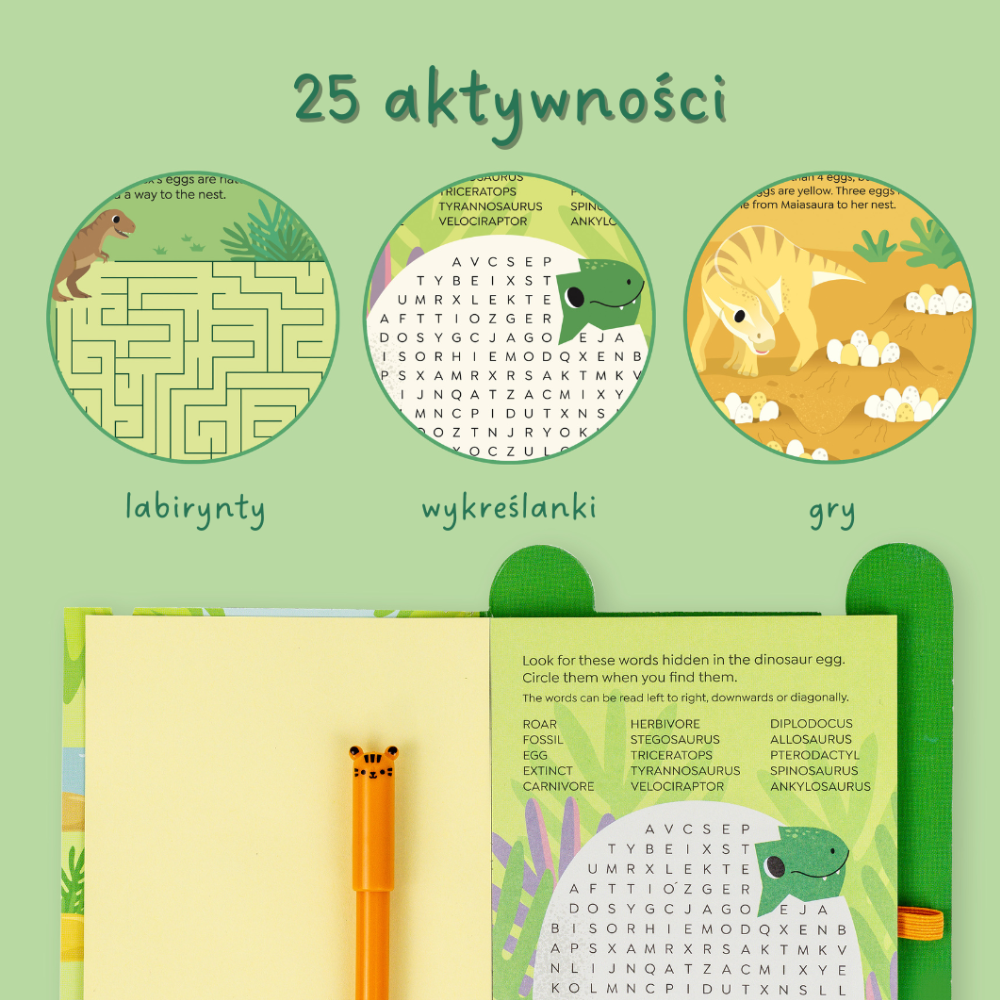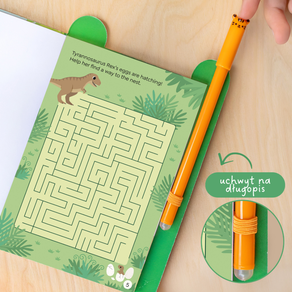 En su interior le esperan laberintos, rompecabezas, juegos de palabras y acertijos lógicos, todo ello en un solo lugar y con la temática de los queridos dinosaurios.