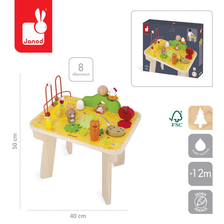 La mesa educativa multifuncional de madera Janod Farm es el juguete ideal para niños a partir de 1 año.