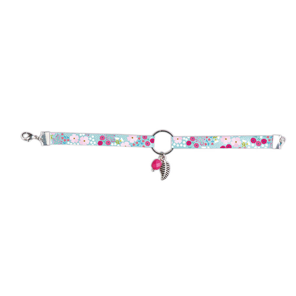 Un collar y dos pulseras hechos con cinta con un bonito estampado floral.