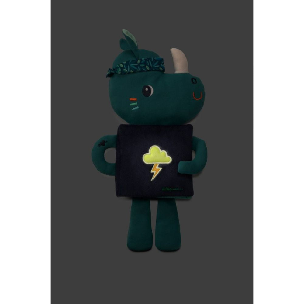 Libro sensorial - rinoceronte de peluche de la marca belga Lilliputiens.