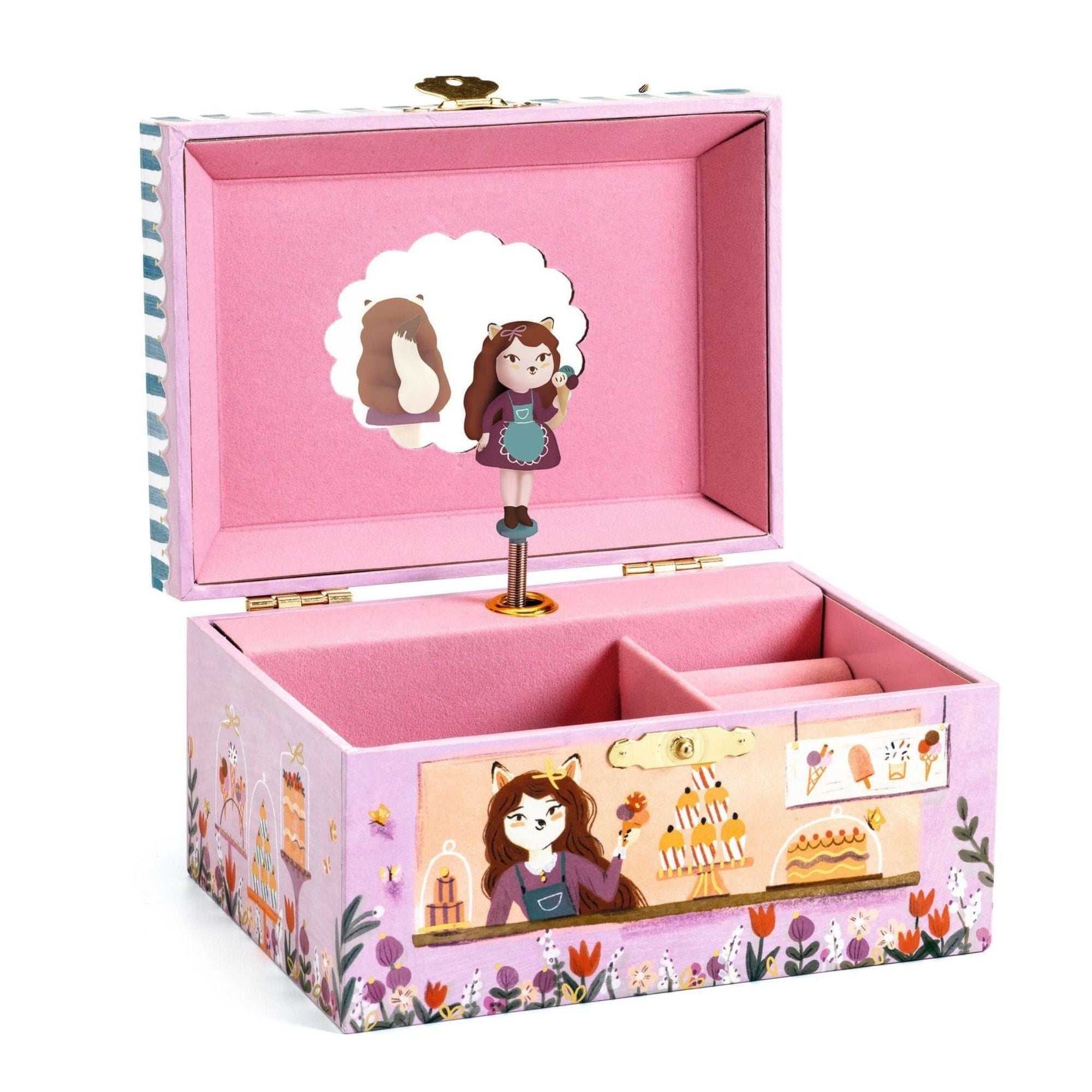 Cofre Djeco con caja de música Caja de caramelos diseñada para guardar joyas en su interior.