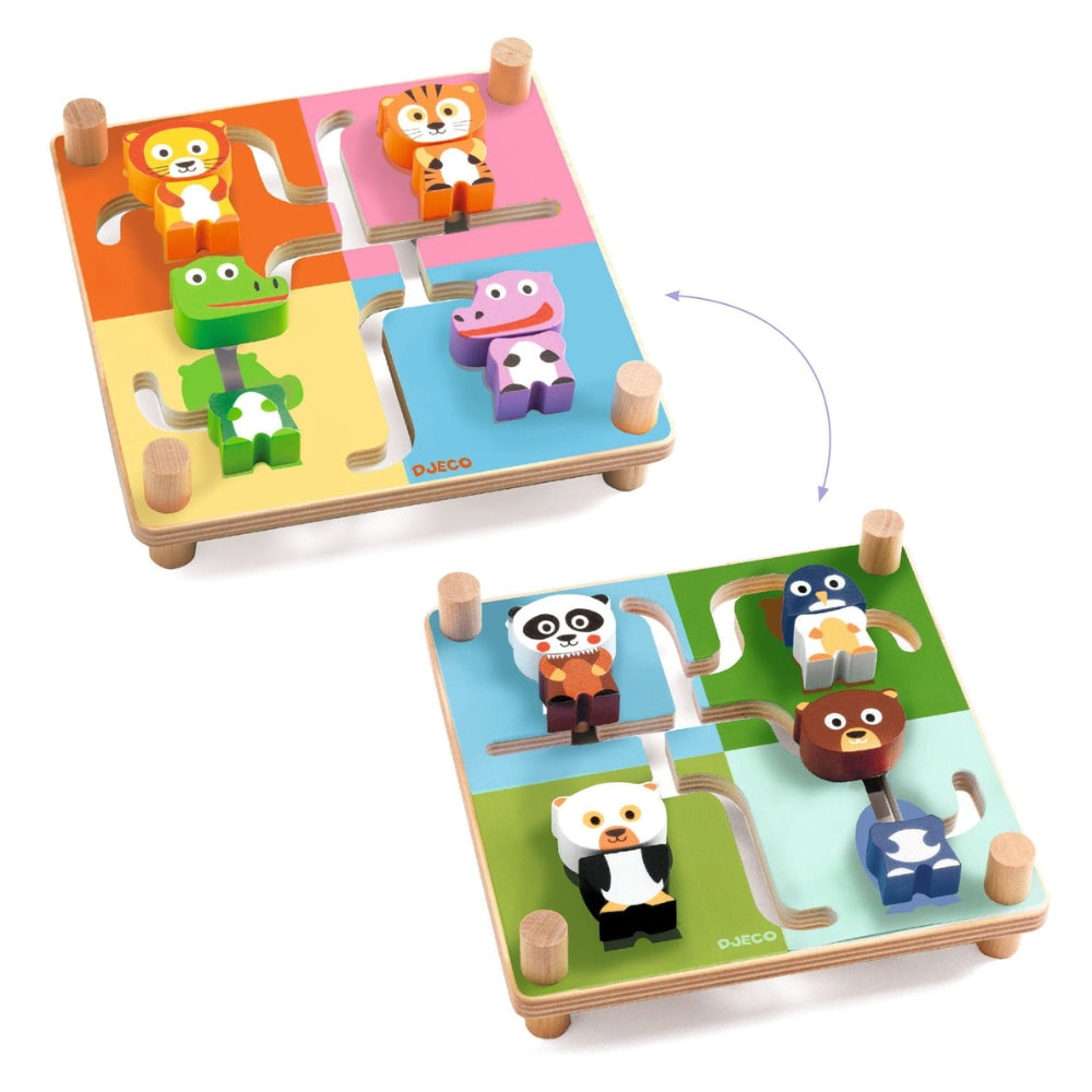 Djeco Laberinto de madera para niños con animales Spinamix