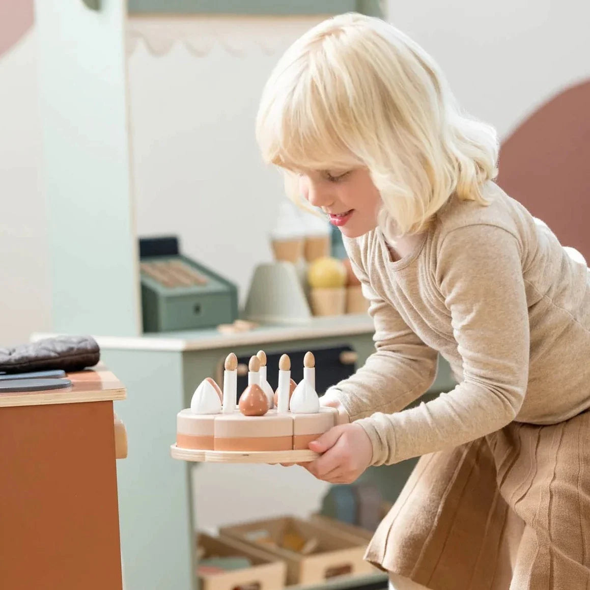 La tarta de cumpleaños de madera de Flexa es una gran idea para regalar.