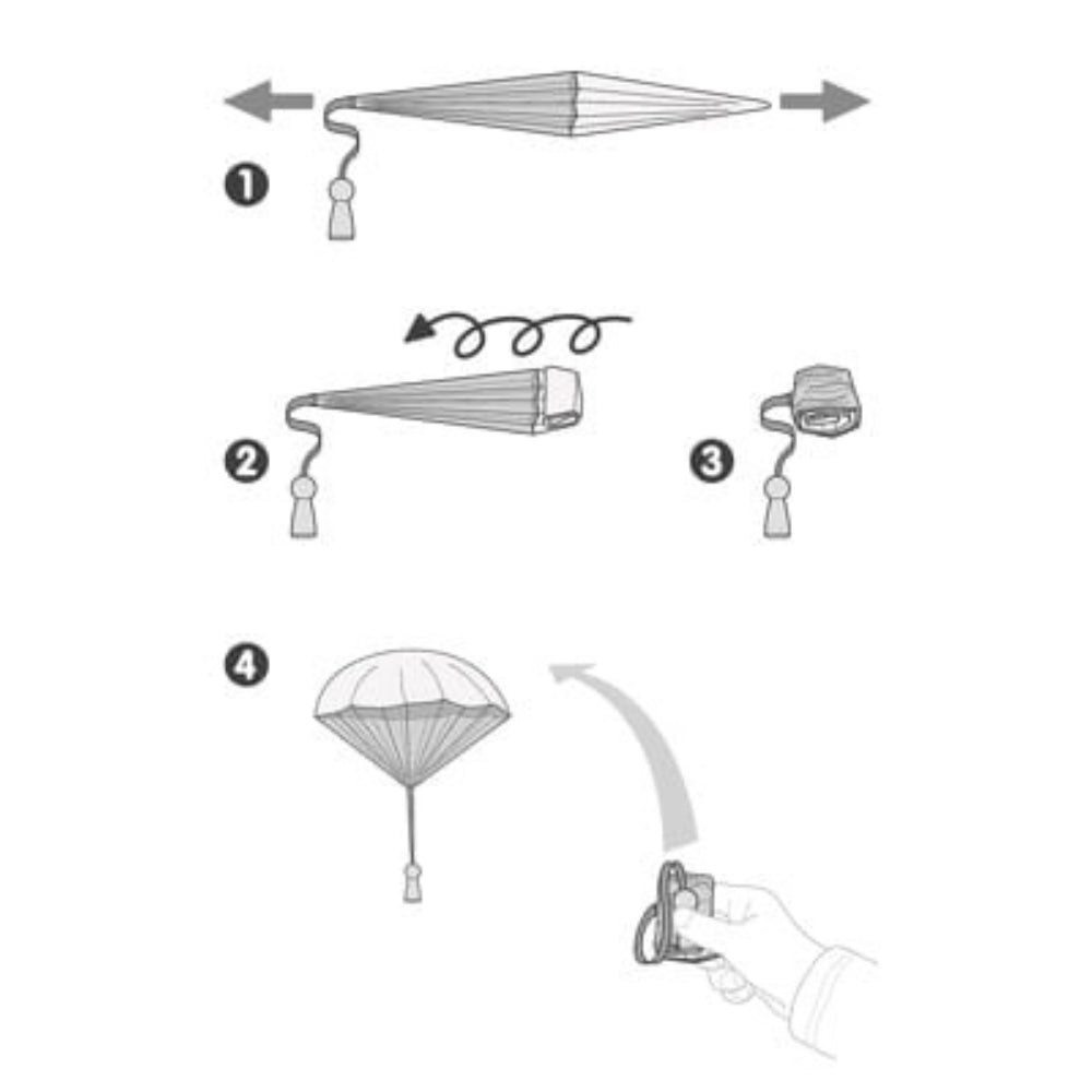 Un juguete clásico con un toque moderno: solo hay que lanzar la figura al aire y ver cómo su paracaídas se despliega suavemente para un vuelo lento.