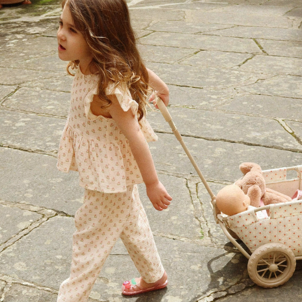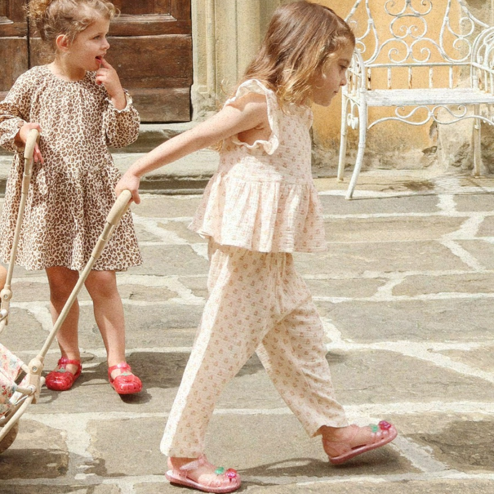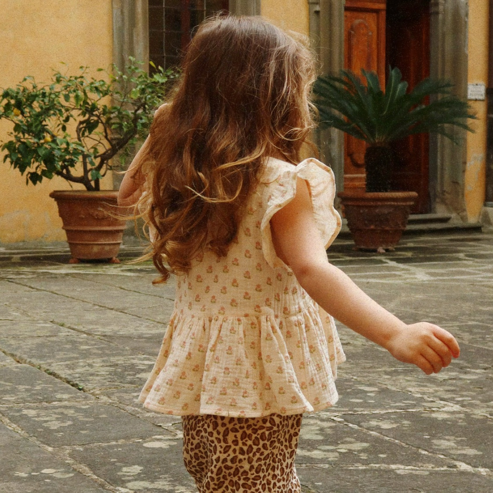 Das Modell Coco wurde aus leichtem, atmungsaktivem Musselin genäht, der sich angenehm auf der Haut anfühlt und sich sowohl für den Alltag als auch für den Sommer eignet.