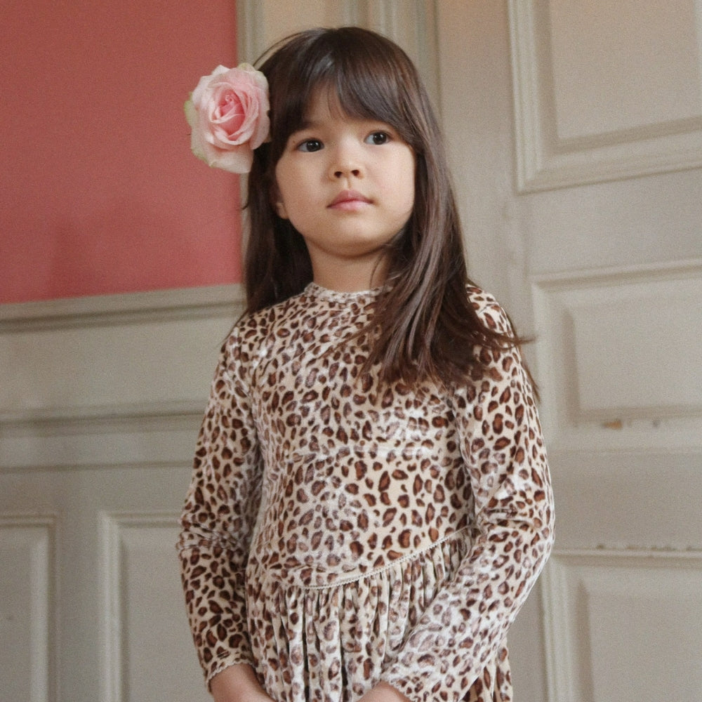 La marca Konges Slojd es conocida por su atención al detalle y el uso de materiales de alta calidad: este vestido, que contiene al menos un 80 % de poliéster con certificación GRS, demuestra que el estilo y el cuidado del medio ambiente pueden ir de la mano.