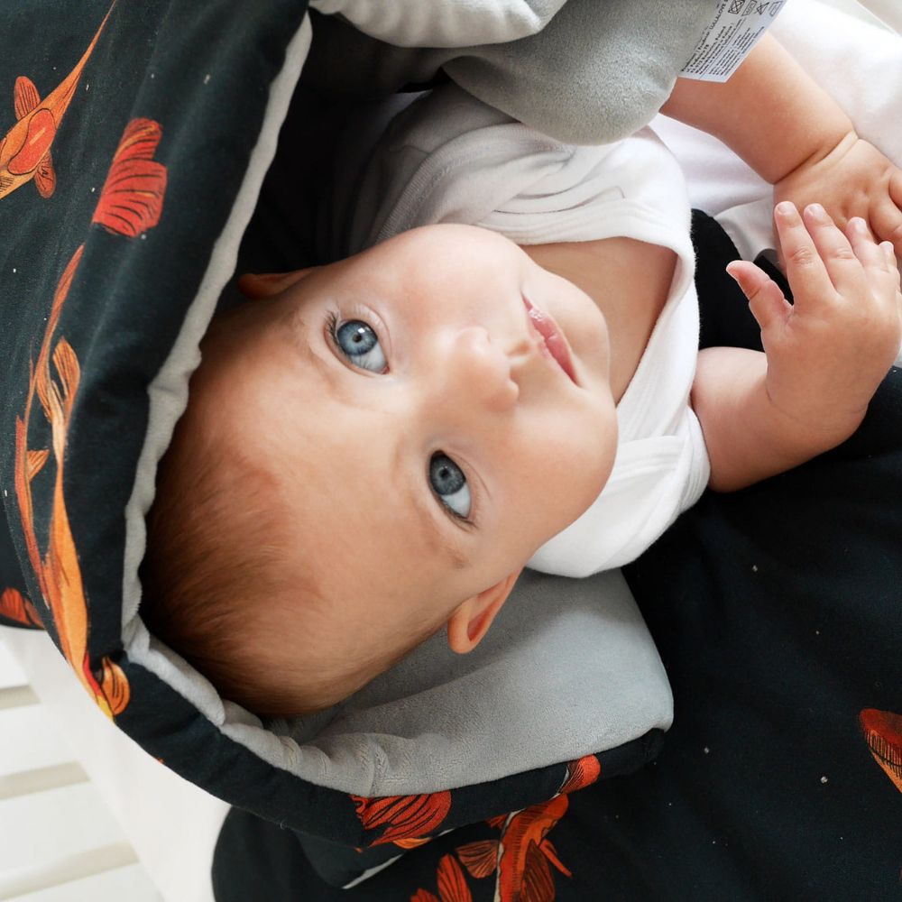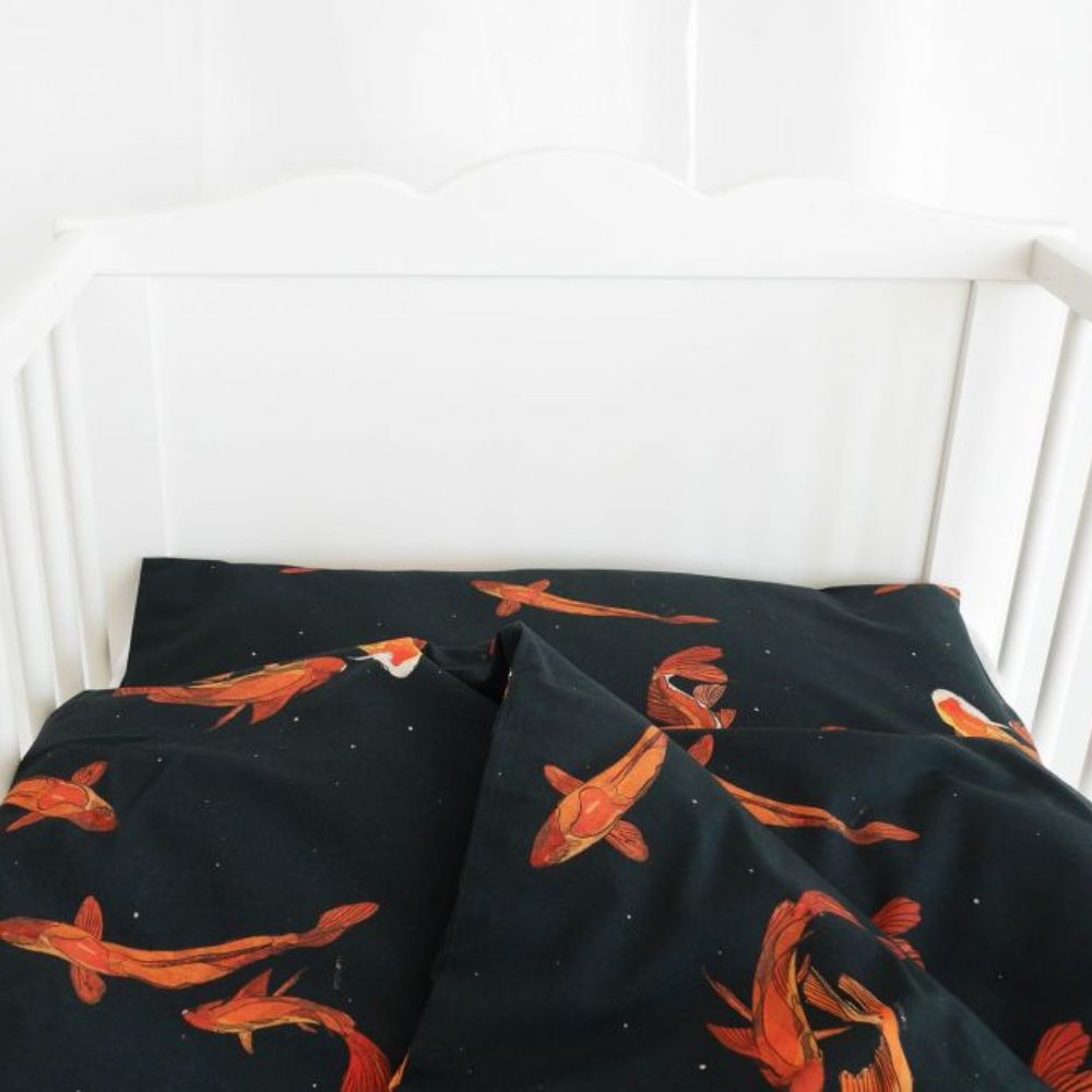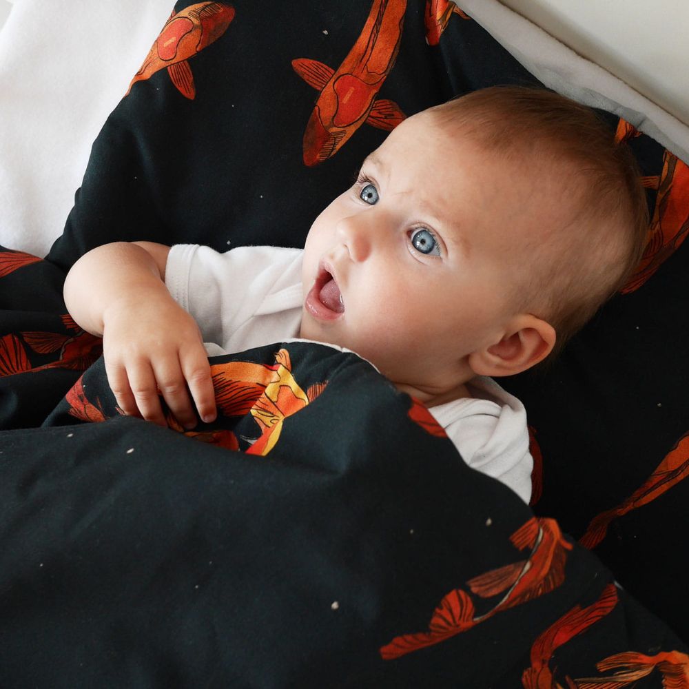Una colcha Karpie Koi única para bebés y niños pequeños de Lullalove, apta para todo el año.