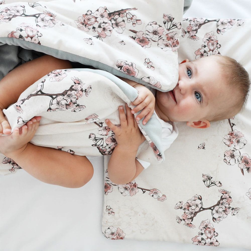 La exclusiva colcha para bebés y niños pequeños sakura de Lullalove, para todo el año.
