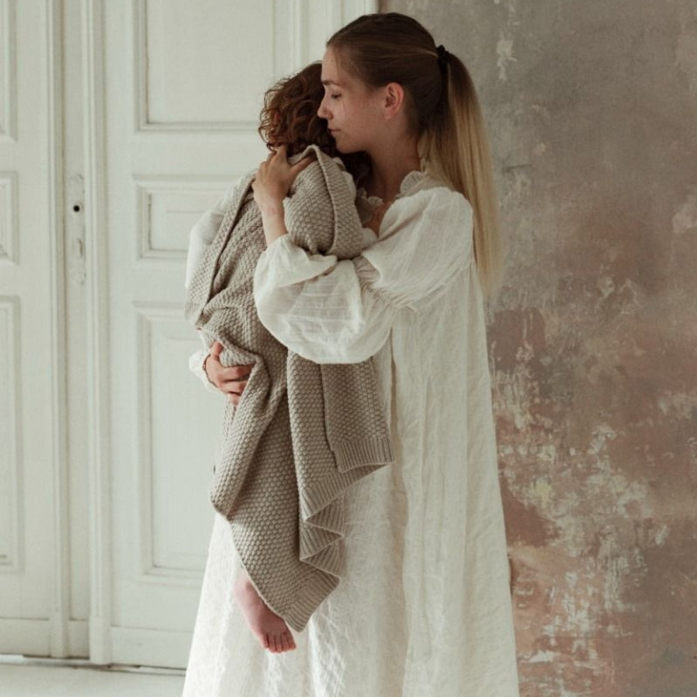 Manta de lana merino cálida beige colección premium de Memi.