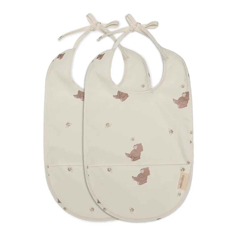 Babero para bebé con 2 estampados de abejas y osos de That's Mine.