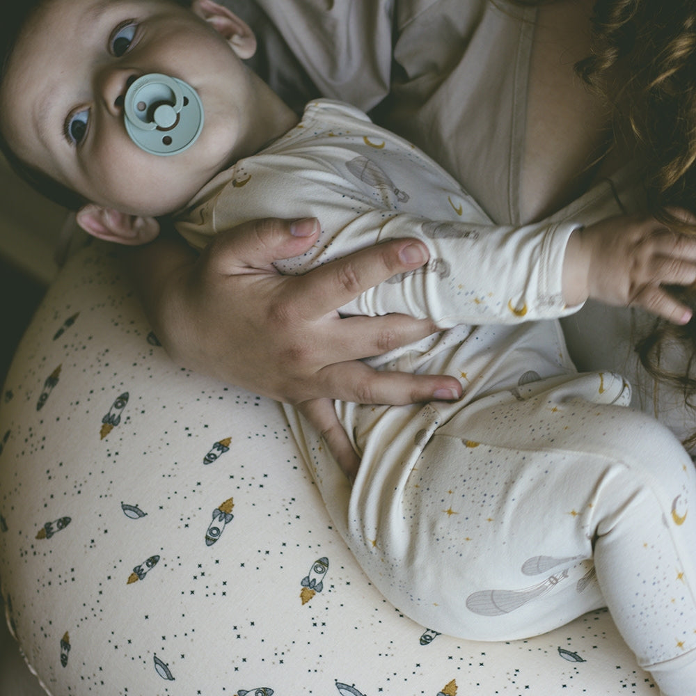 La ropa de dormir para bebés de That's Mine está confeccionada con suave algodón orgánico y presenta un bonito estampado de globos.