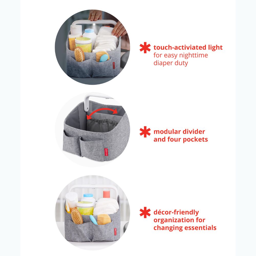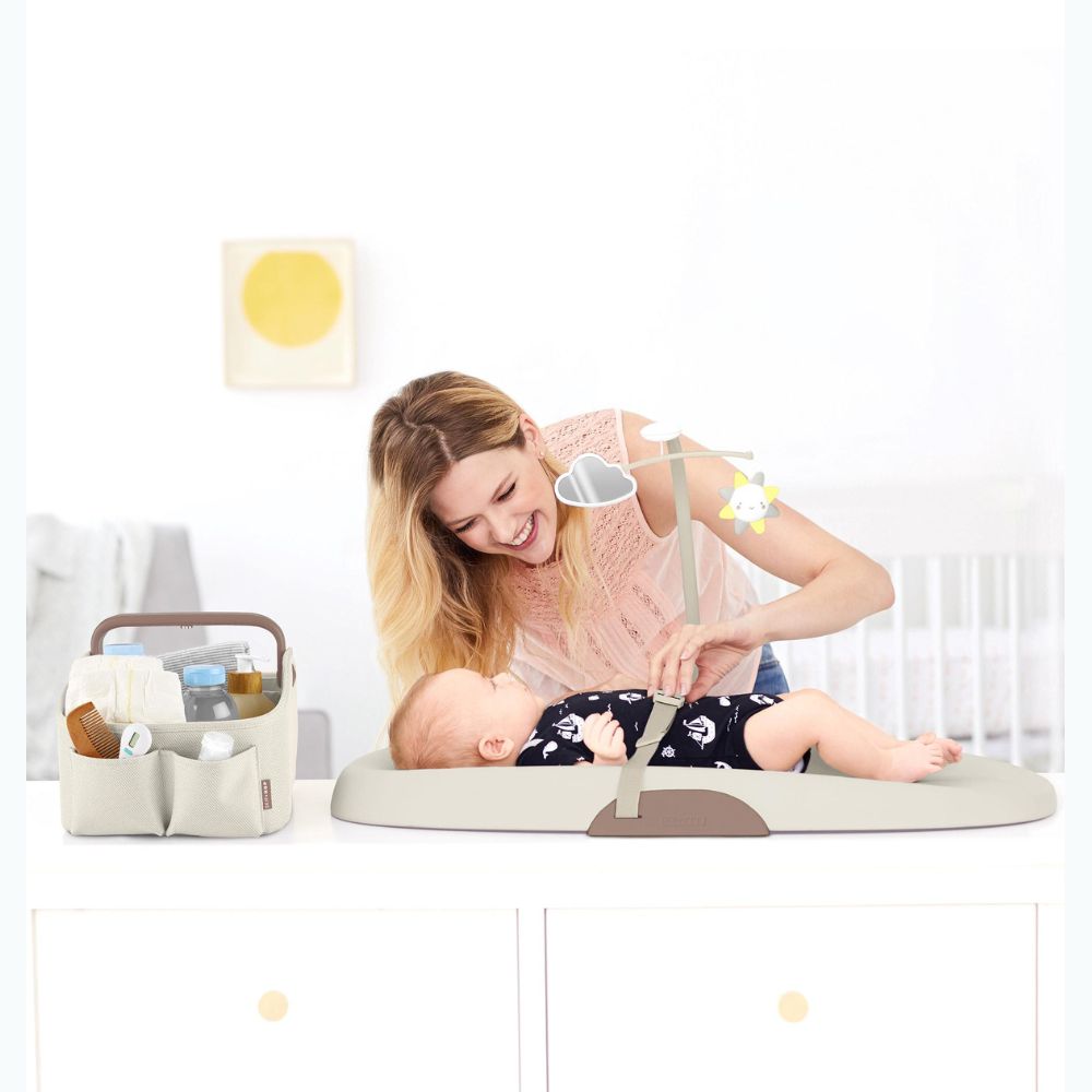 El organizador de pañales de Skip Hop está fabricado con un material duradero que se adapta a cualquier interior, añadiendo funcionalidad y estilo.