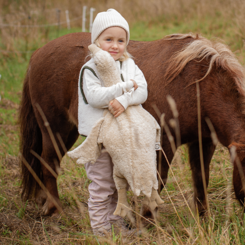 El peluche térmico Senger Naturwelt Goose es un querido compañero para dormir y descansar que calma, calienta y envuelve con ternura.