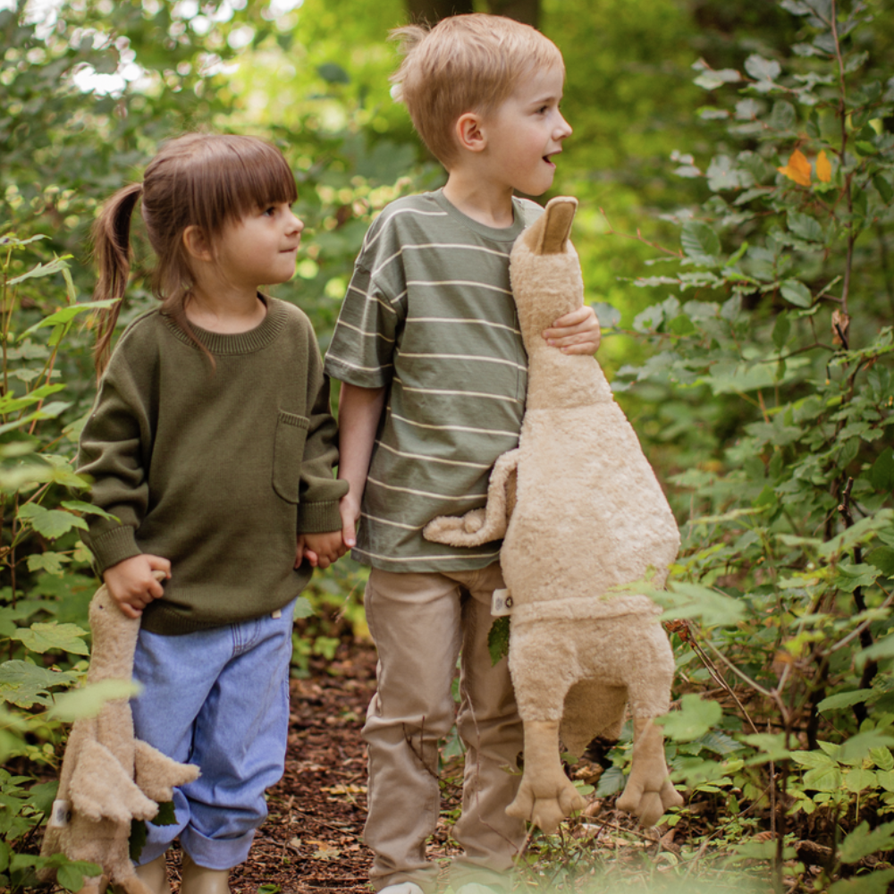 Senger Naturwelt crea sus peluches a mano con algodón orgánico certificado por GOTS y los rellena con lana de oveja pura.