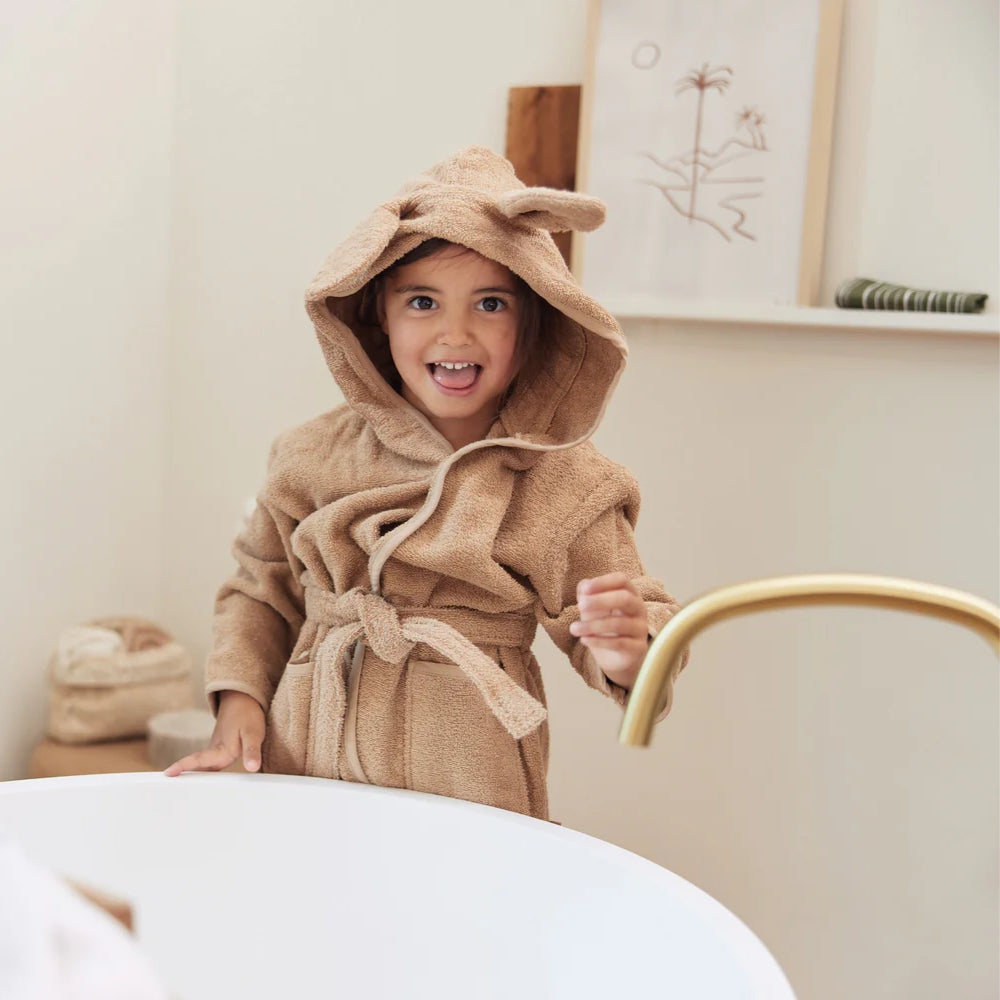 Ideal para después del baño, el albornoz de felpa para bebés es una prenda indispensable para todos los pequeños.