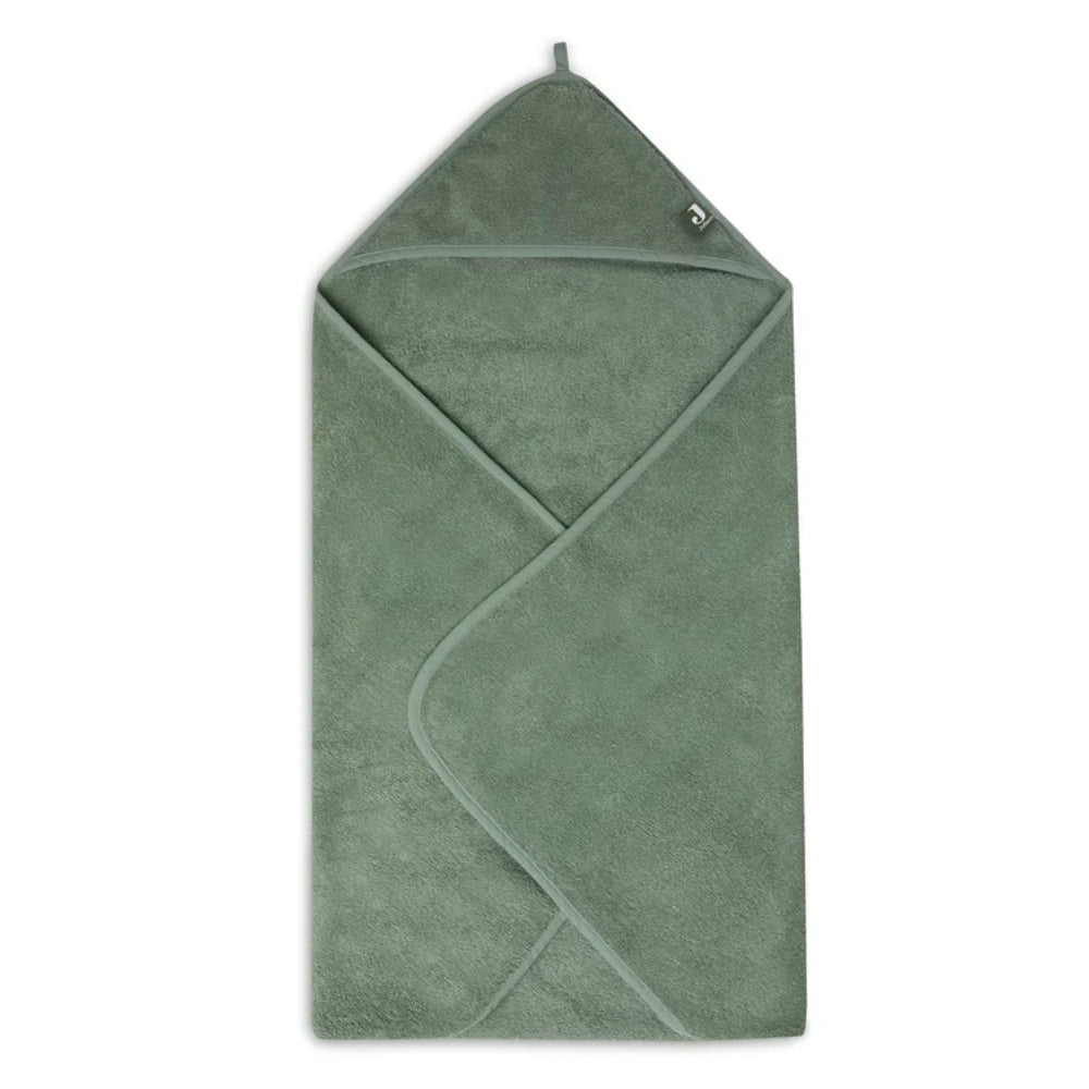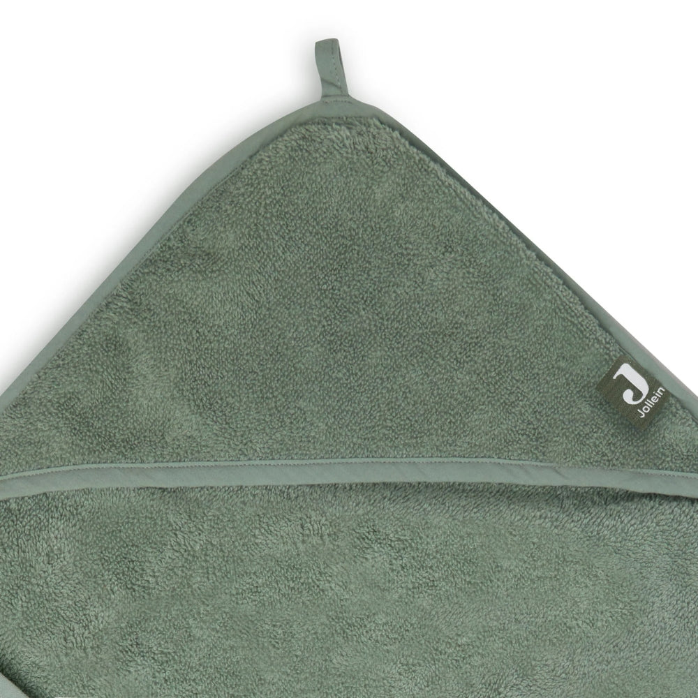 Suave toalla de baño con capucha para bebés de Jollien Ash Green. Perfecta para después del baño y en la piscina.