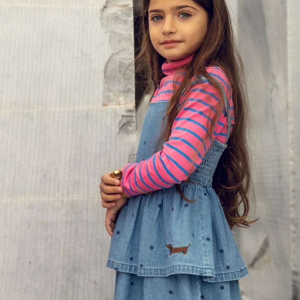 Mini Rodini vestido vaquero para niña Azul punteado