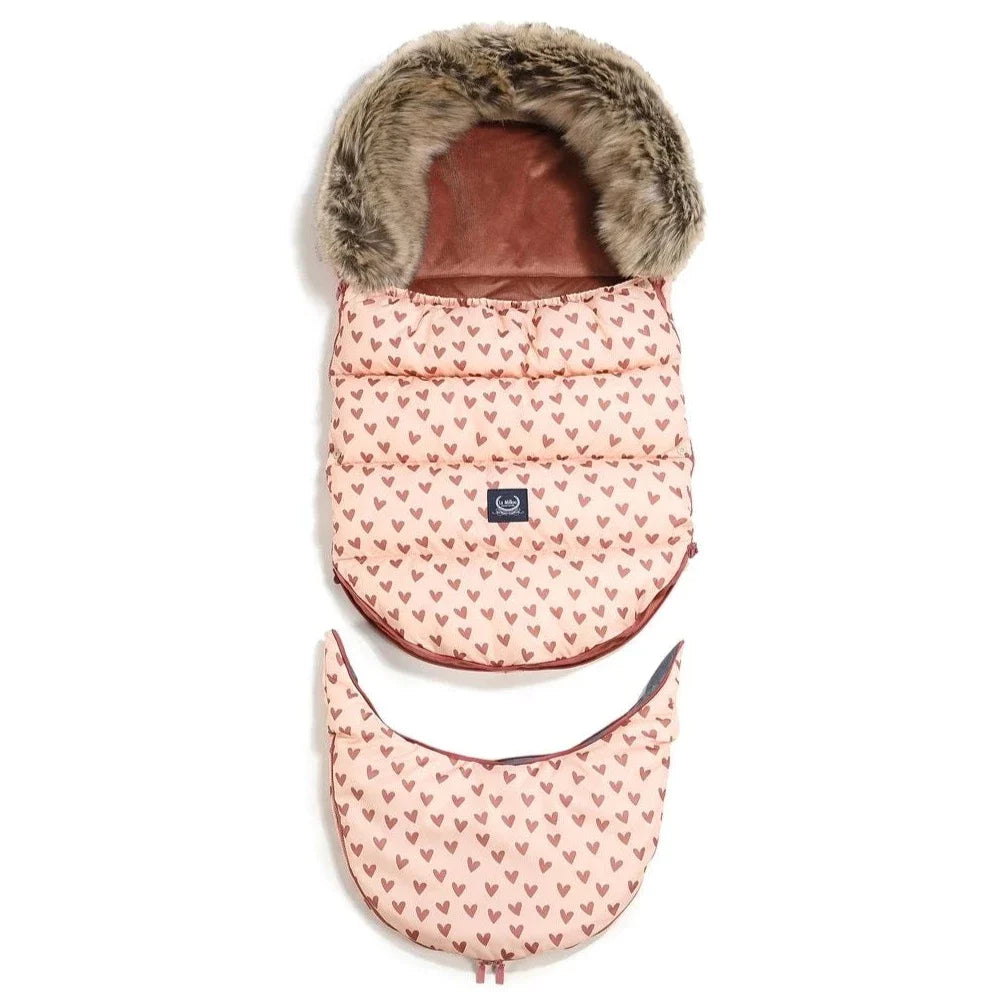 Saco de dormir combinado para cochecito de invierno con el precioso diseño Heartbeat Pink de La Millou.