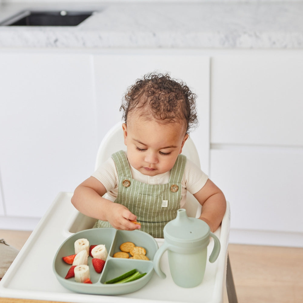 El plato B.box con tapa es un apoyo indispensable durante las comidas, ya que facilita el aprendizaje de la alimentación y ayuda a mantener el orden.