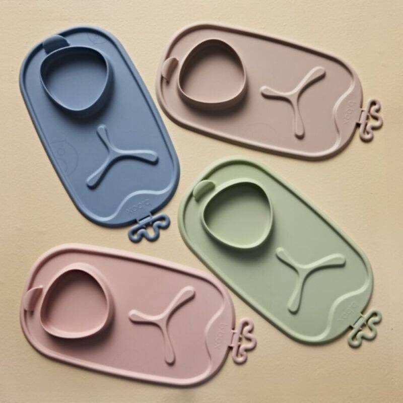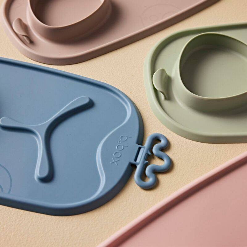 La alfombrilla protectora enrollable b.box para alimentación BLW roll + go, fabricada en silicona, sustituye al cuenco y al plato de tres piezas del bebé.