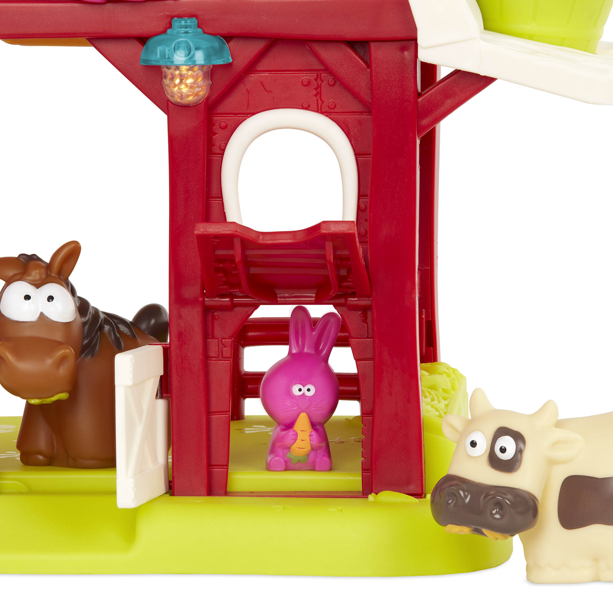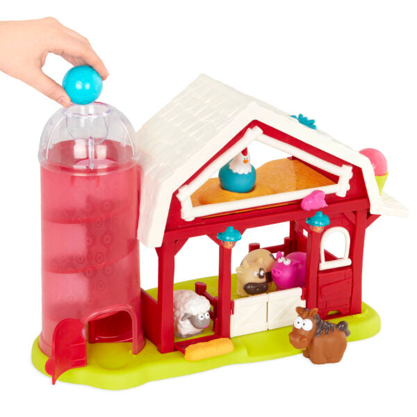 Con un murciélago, un ratón y una gallina que se mueven cuando se abre la puerta del silo, es muy divertido para que los niños jueguen con su imaginación.
