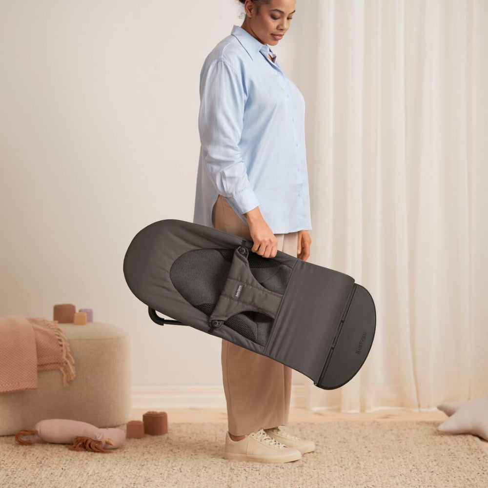 El sillón reclinable para bebés Babybjorn proporciona un lugar acogedor para que tu bebé juegue y descanse.
