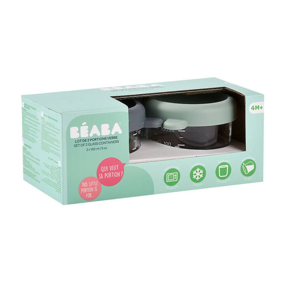 Beaba Juego de tarros de cristal con cierre 2 x 150 ml Mineral/Verde salvia