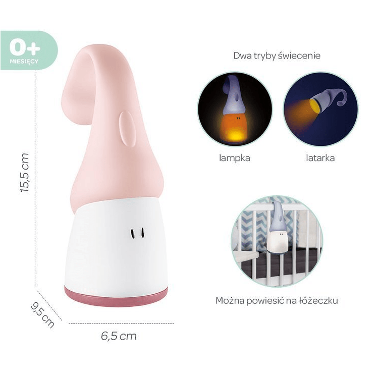 La lámpara LED emite una luz suave que mantendrá a tu bebé seguro incluso durante toda la noche (se puede colgar en la cuna, por ejemplo).