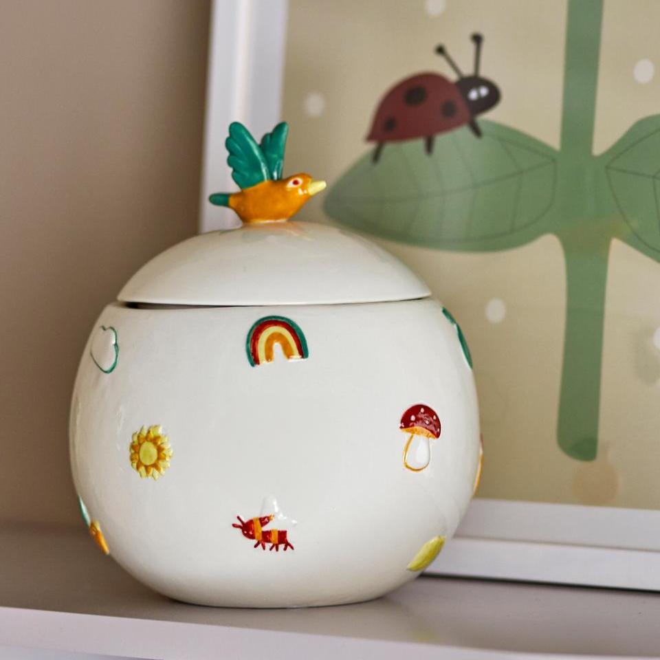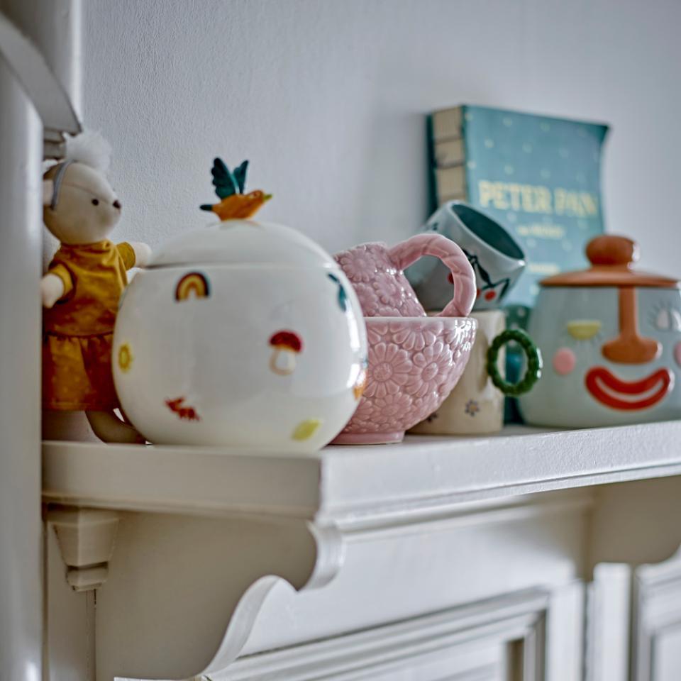 El adorable recipiente Agnes con tapa de Bloomingville MINI es un complemento encantador para cualquier habitación infantil gracias a su diseño único.