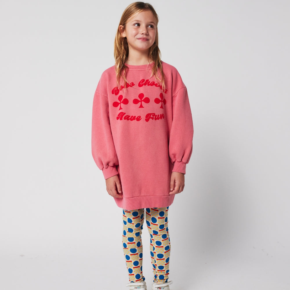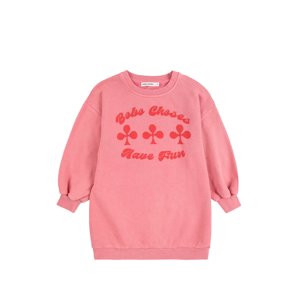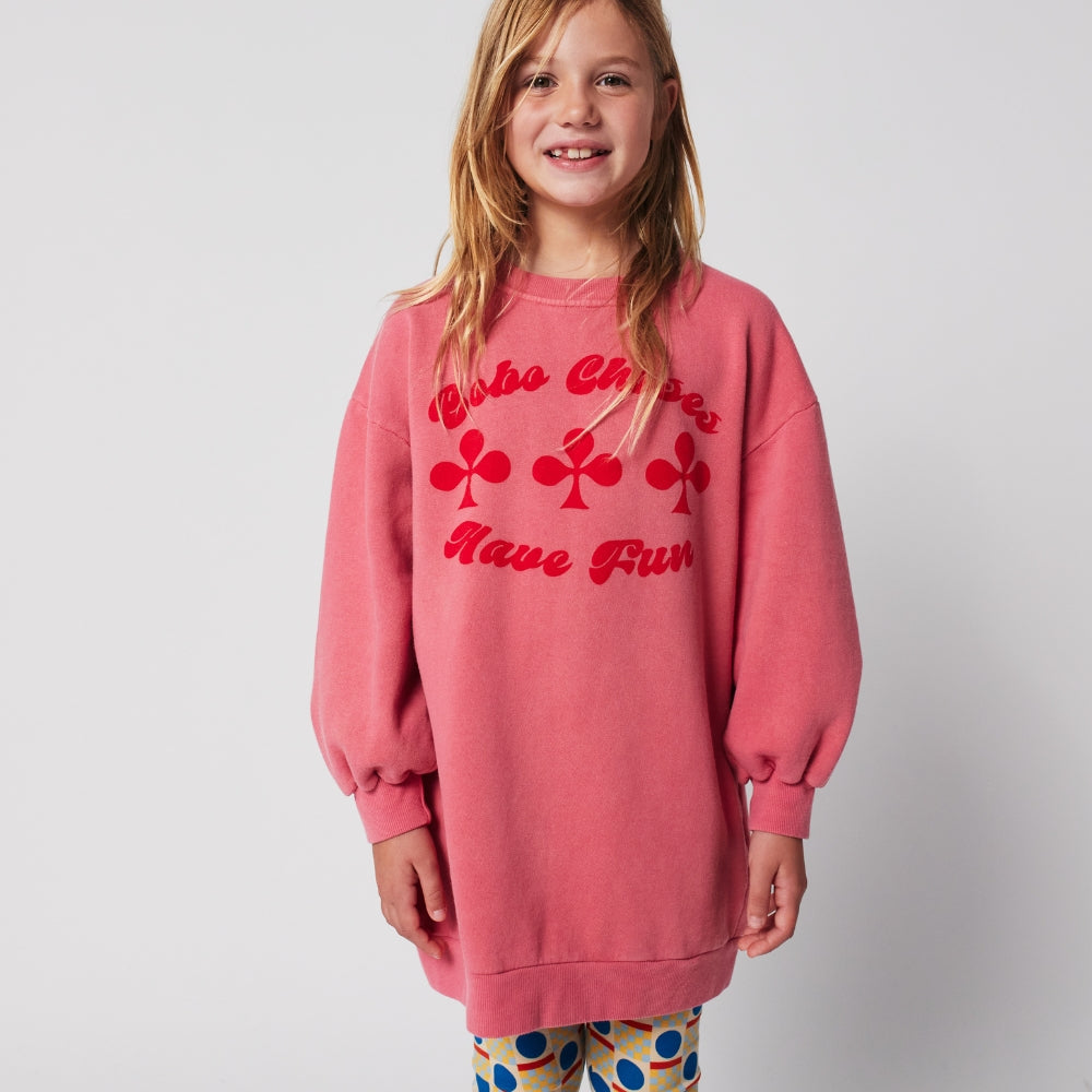 Su corte holgado, similar al de una sudadera, garantiza un ajuste cómodo, mientras que el estampado original Have Fun le da al vestido un aire divertido e infantil.