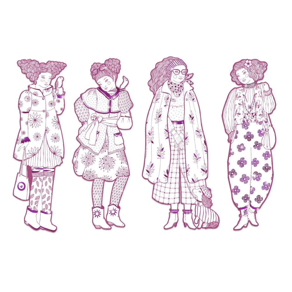 Este conjunto de personajes para colorear nos adentra en el mundo de la moda con Rosemary y sus amigas.
