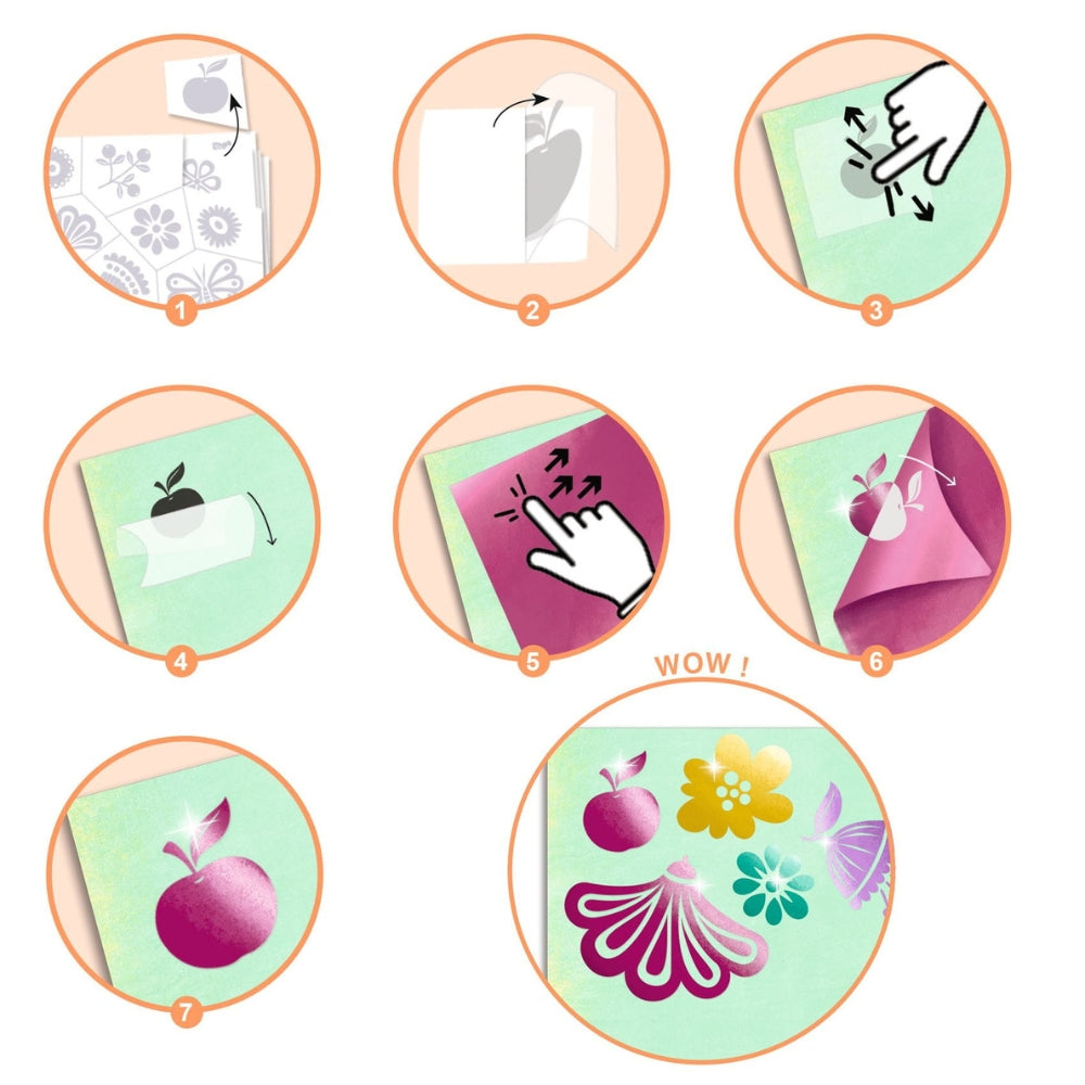 1 carpeta con 10 hojas de parches adhesivos y 10 hojas metálicas (4 colores)