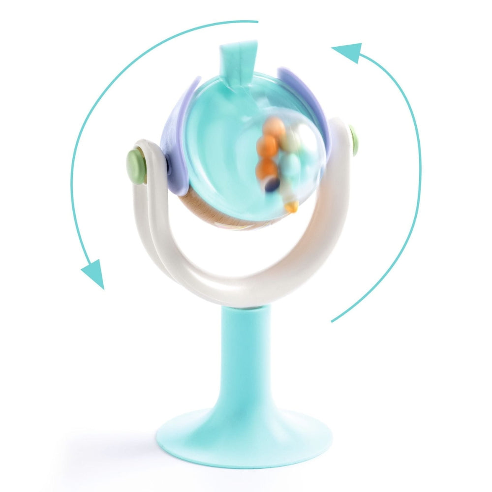 Gracias a la ventosa, el sonajero Djeco se adhiere de forma estable a la superficie para jugar de forma segura y cómoda.