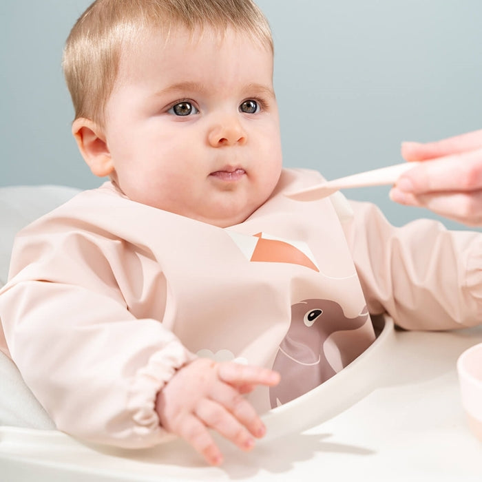 El babero con mangas ha sido diseñado para que tu bebé pueda disfrutar plenamente de su comida sin mancharse la ropa.