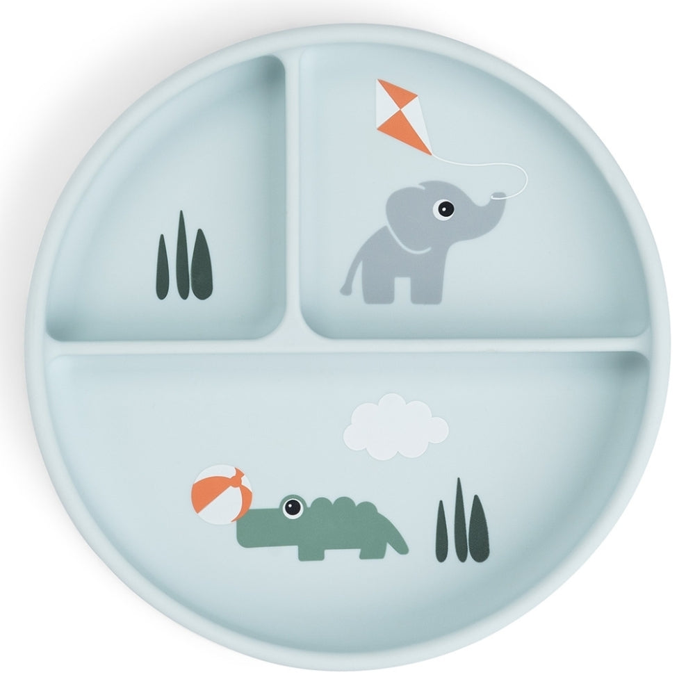 Su forma bien pensada, con compartimentos, facilita servir diferentes platos, y el encantador motivo de Elphee, el elefante, y Croco, el cocodrilo, hace que cada comida sea más divertida y atractiva para tu hijo.