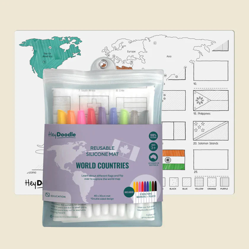 HeyDoodle Alfombrilla grande de silicona para colorear por ambos lados - Mapa del mundo